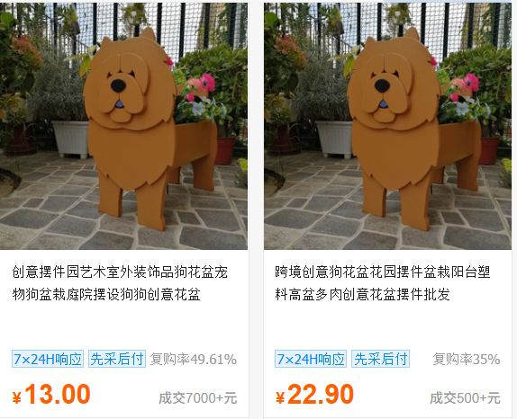 这是第一个吸引我眼球的产品。一个造型可爱的小狗花盆。我们快速检查一下这款产品是否符合我们的标准: